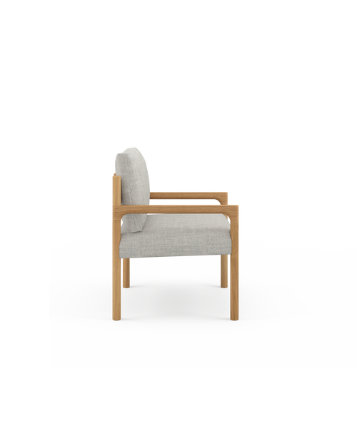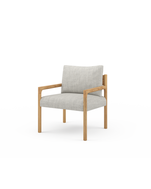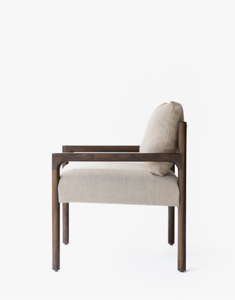 A contemporary occasional chair, our Cooper Chair features a refined timber frame with seamless junctions, dowel legs and a curved back rest. A simple fixed seat cushion and loose back cushion provide optimum support and comfort.